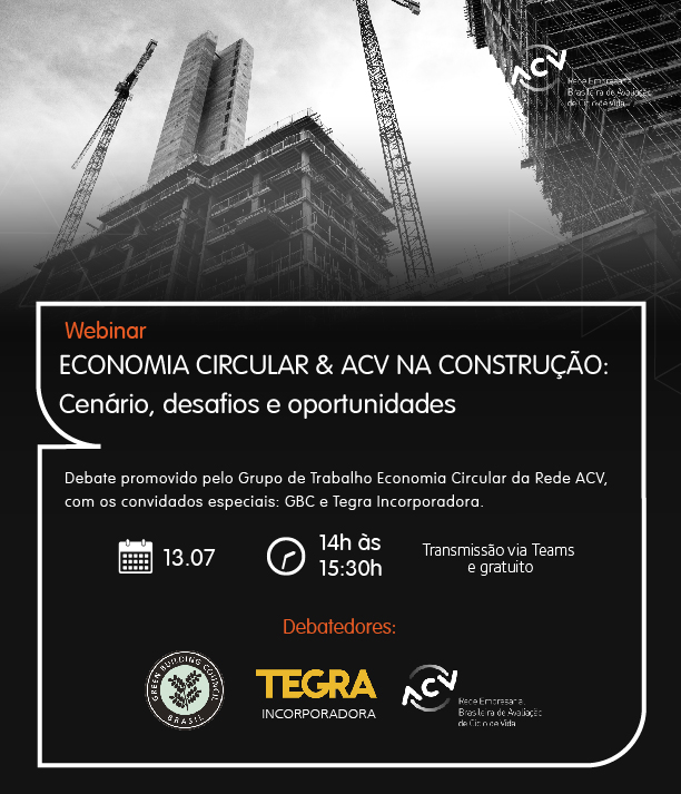 O Grupo de Trabalho Economia Circular da Rede ACV convida para debate sobre a complementariedade entre EC e ACV, na Construção. Esta ação é um desdobramento da publicação do Position Paper e do White Paper, em dez ’20, onde mapeamos considerações em 7 segmentos-chave distintos. Ambos estão disponíveis aqui em nosso site. Será dia 13.07.2021, das 14h00 às 15h30, […]