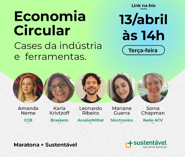 O que é a Avaliação de Ciclo de Vida? E a Economia Circular? Qual a relação entre ambas? Qual a aplicação concreta destes conceitos, em segmentos-chave, como Aço, Alumínio, Construção, Eletroeletrônico, Papel, Plásticos e Têxtil? Inscrições: https://redeacv-economiacircular.eventbrite.com.br/