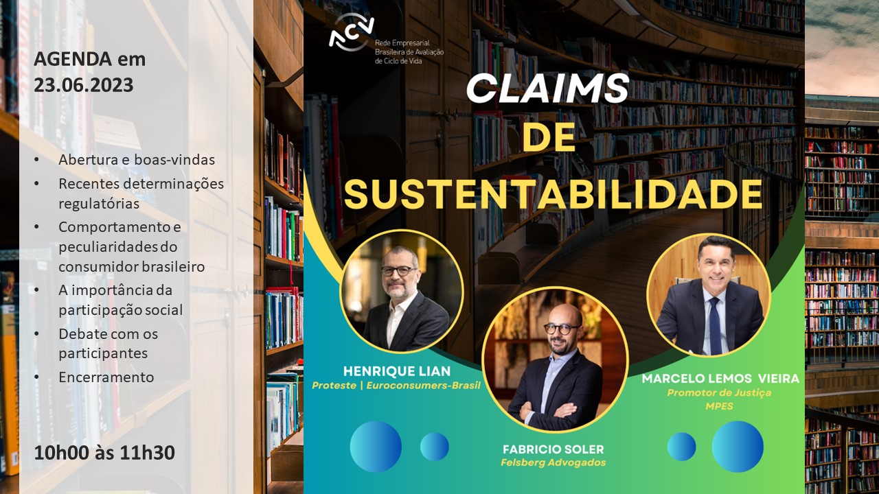 “Claims de Sustentabilidade”, evento realizado pela Rede ACV em 23.06.2023: >140 pessoas interessadas em conhecer e debater a complexidade de afirmações de Sustentabilidade – o contexto regulatório, as diferentes realidades no mundo e no Brasil e o importante papel da conscientização e atuação da sociedade.